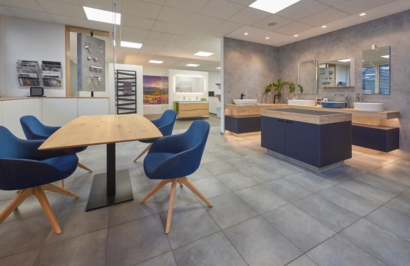 In unserem Schauraum präsentieren wir Ihnen ausgewählte Markenprodukte, moderne Badlösungen, Duschsysteme, Badmöbel, Fliesen und innovative Wellness-Elemente.